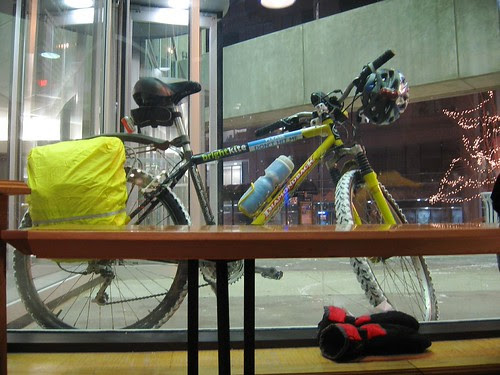 When I pulled my tattered Wal-Mart bike into Bike America, Kevin (the General Manager) and Libby (one of the wrenches at the time, she's gone now) mentioned bike commuting. "You're a bike commuter, huh? Let's see what we've got for you..." This phrase, "Bike commuting" would stick in my head for a few days. Some Internet searches later, I was paying attention to (if not slightly idolizing) Warren and cDude locally, and Fritz, Warren (again) & Tim, RL, Moe & Friends. I'd also found the Commuting forum at BikeForums.net, where I'd mostly lurk, but post occasionally. I'd found people kind of like me. People with more experience. People with sometimes drasically different and sometimes flat-out opposing opinions on stuff. From the crew at my local bike shop to the Internet-dwelling denizens of bike commuting: they were my inspiration.